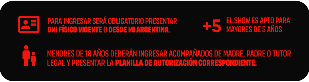 INGRESO A LA SALA CON DNI VIGENTE SIN EXCEPCIÓN ⚠️ A los precios publicados se le suman los gastos de gestión comprando online y también en la boletería (ver precios finales en los pasos de compra). Reintegro de entradas para shows reprogramados o cancelados:  Enviar solicitud por mail.